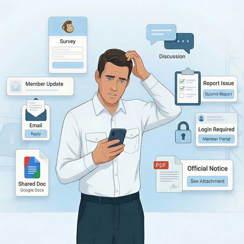 A newsletter goes out. A member reads it. Then the real process begins. They may want to respond, report an issue, answer a survey, join a discussion, or find a related document.