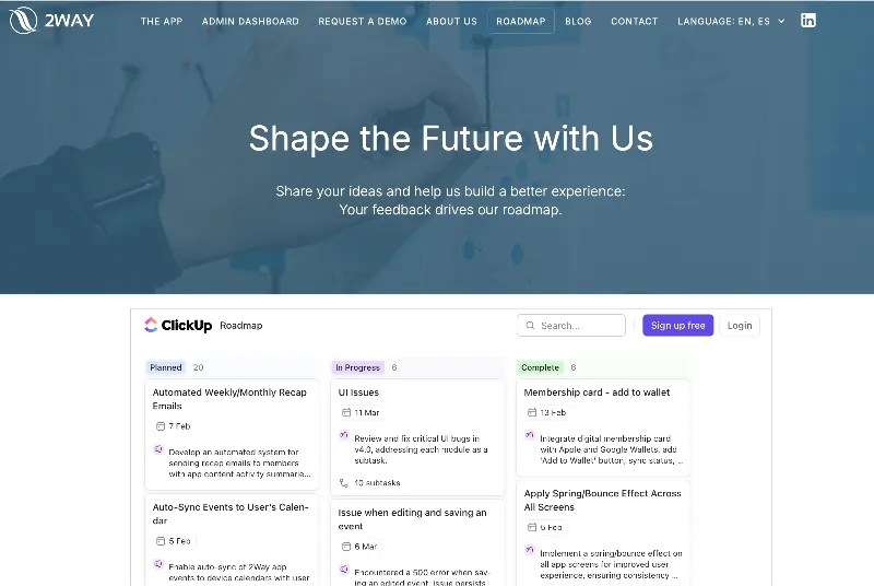 Visit 2Way Roadmap (Click “Roadmap” in the top menu)