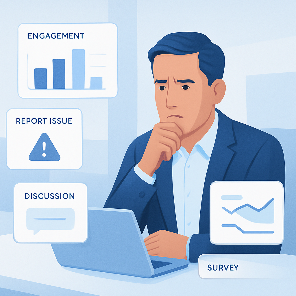 One update may go out by email. A discussion may continue somewhere else. A report may be submitted through another workflow. Survey responses may live in a separate tool. Documents may sit in a portal or archive with no clear connection to engagement around them.